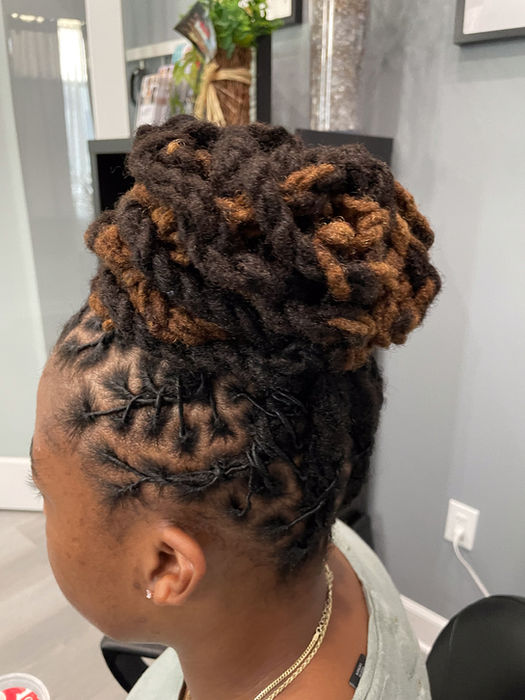 Explore the artistry of locs in our gallery, showcasing the timeless elegance and versatility of sister locks, interlocks, and traditional locs. Discover the intricate patterns and textures that define each style, from the refined uniformity of sister locks to the natural beauty of traditional locs. Immerse yourself in a celebration of diversity and individuality as we highlight the unique journey and expression of each loc wearer. Whether you're seeking inspiration for your own loc journey or simply appreciating the artistry, our gallery invites you to explore the beauty and richness of loc culture.